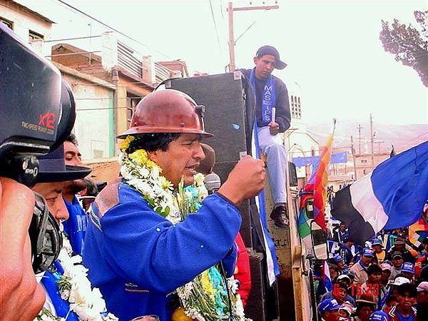 BOLIVIE - L'Amérindien Evo Morales, leader du Mouvement vers le socialisme (MAS), en campagne