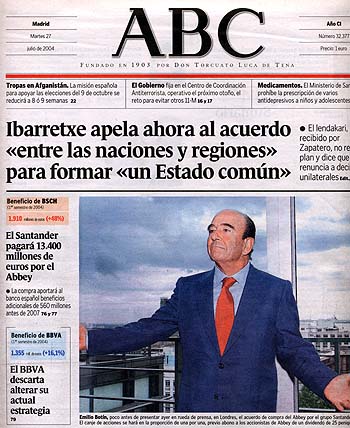 A condition toutefois que, d'ici décembre, les actionnaires des deux banques, la Commission européenne et les organismes régulateurs espagnol et britannique donnent leur feu vert et qu'aucune autre offre de rachat ne séduise davantage l'Abbey. Classé par Forbes comme détenteur de la quatrième fortune d'Espagne, né à Santander, port et ville industrielle du nord cantabrique, arrière-petit-fils, petit-fils et fils de banquier, Emilio Botin (diminutif d'Emilio Botin-Sanz de Sautola Garcia de los Rios...) héritait à 52 ans de la présidence de la Banque de Santander, assumée jusqu'alors par son père. C'était en 1986, année de l'entrée de l'Espagne dans la Communauté européenne. Une coïncidence qui obligeait à regarder au-delà des Pyrénées. France, Italie, Allemagne, Portugal, Pologne, pays scandinaves et aujourd'hui Royaume-Uni ... participations, fusions ou alliances du groupe Santander s'internationalisaient avec Emilio Botin. Le rachat de l'Abbey est le premier lancé par une banque continentale sur une banque anglaise. En Amérique latine, le groupe Santander opère au Chili (18,5% des dépôts), au Mexique (14,1%) et au Brésil (4,1%). Des 103.038 employés actuels du groupe, 68% travaillent hors d'Espagne. "L'Art de la guerre", écrit il y 2.500 ans pas le Chinois Sun Tzu, est l'un des livres de chevet d'Emilio Botin. En Espagne, il a brisé les pactes bancaires en rémunérant mieux les dépôts que ses concurrents.