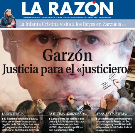 Razón, cette photo de partisans de Baltasar Garzon écrivant